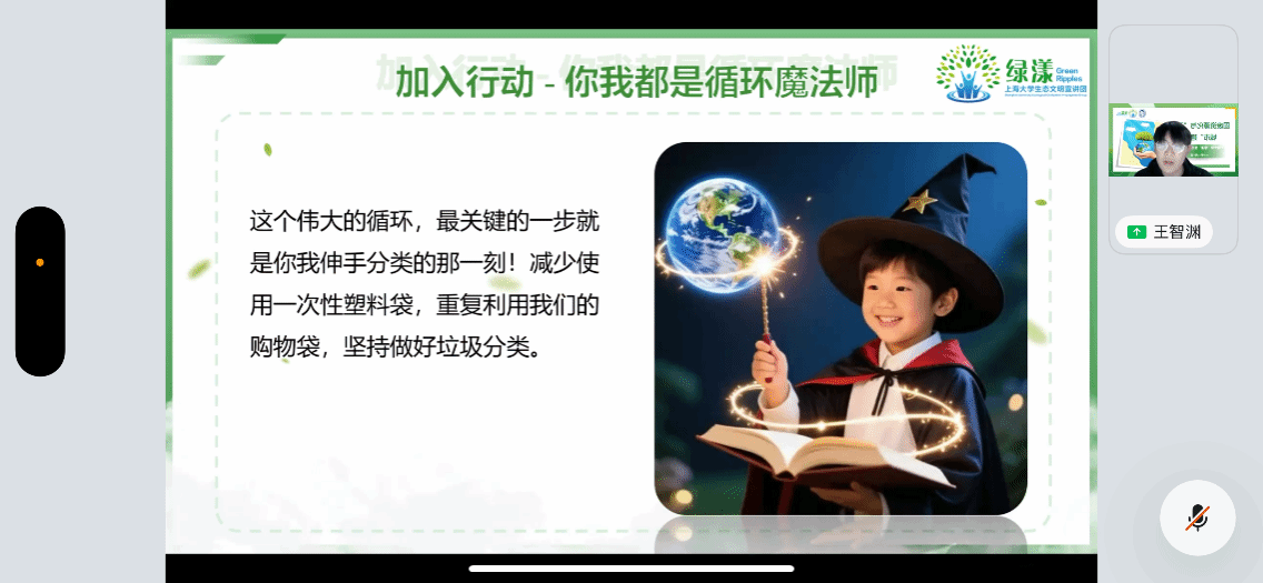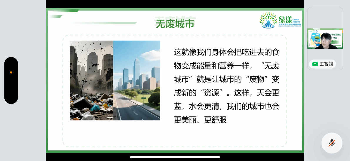 很高兴这次能走进王台小学的课堂,我本来也有点担心,怕“资源化”与“无废城市”这些词对三年级的孩子来说太陌生,怕屏幕会隔开我们的互动。但真正开始宣讲,看到他们在镜头前专注的眼神、在聊天框里争先恐后的发言,我的心一下子就踏实了。这堂课也让我明白,环保教育不是单向灌输,而是一场共同创造的对话。我给他们讲垃圾如何分类、如何再生,他们用天马行空的想象回应我——有的说想把废旧玩具改造成校园装饰,有的想用落叶做成一本书。他们的纯粹与创意,反而提醒我:环保不是沉重的任务,而是一种有趣、有温度的生活选择。