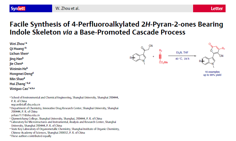 [3]Wei Zhou et al. Facile Synthesis of 4-Perfluoroalkylated 2H-Pyran-2-ones Bearing Indole Skeleton via a Base-Promoted Cascade Process[J]. Synlett, 2021, 32(12) : 1197-1200.