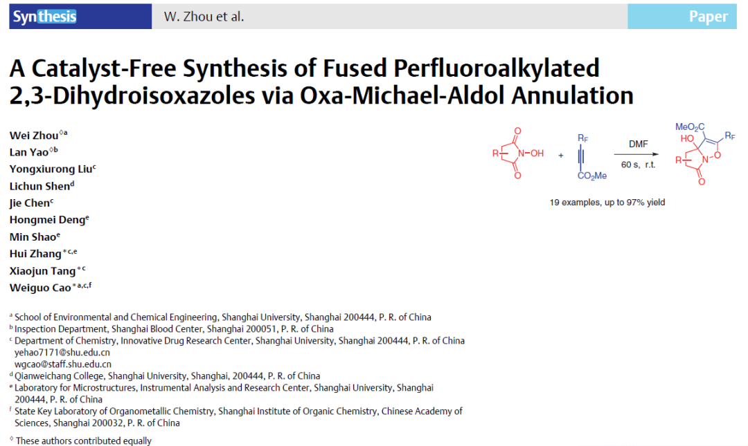 [4]Wei Zhou et al. A Catalyst-Free Synthesis of Fused Perfluoroalkylated 2,3-Dihydroisoxazoles via Oxa-Michael-Aldol Annulation[J]. Synthesis, 2022, 53(2) : 429-438.