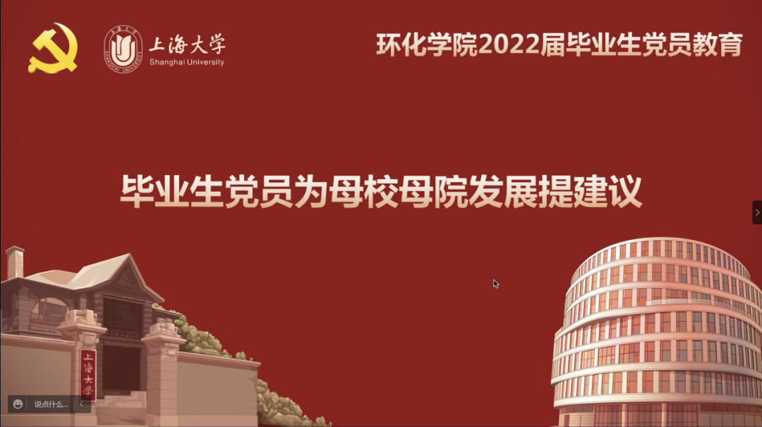 一声环化人,一生环化情。在即将告别母校之际,各位毕业生党员们也积极从人才培养的目标和定位、职业生涯发展规划、实验室建设等方面为母校母院的发展建言献策。