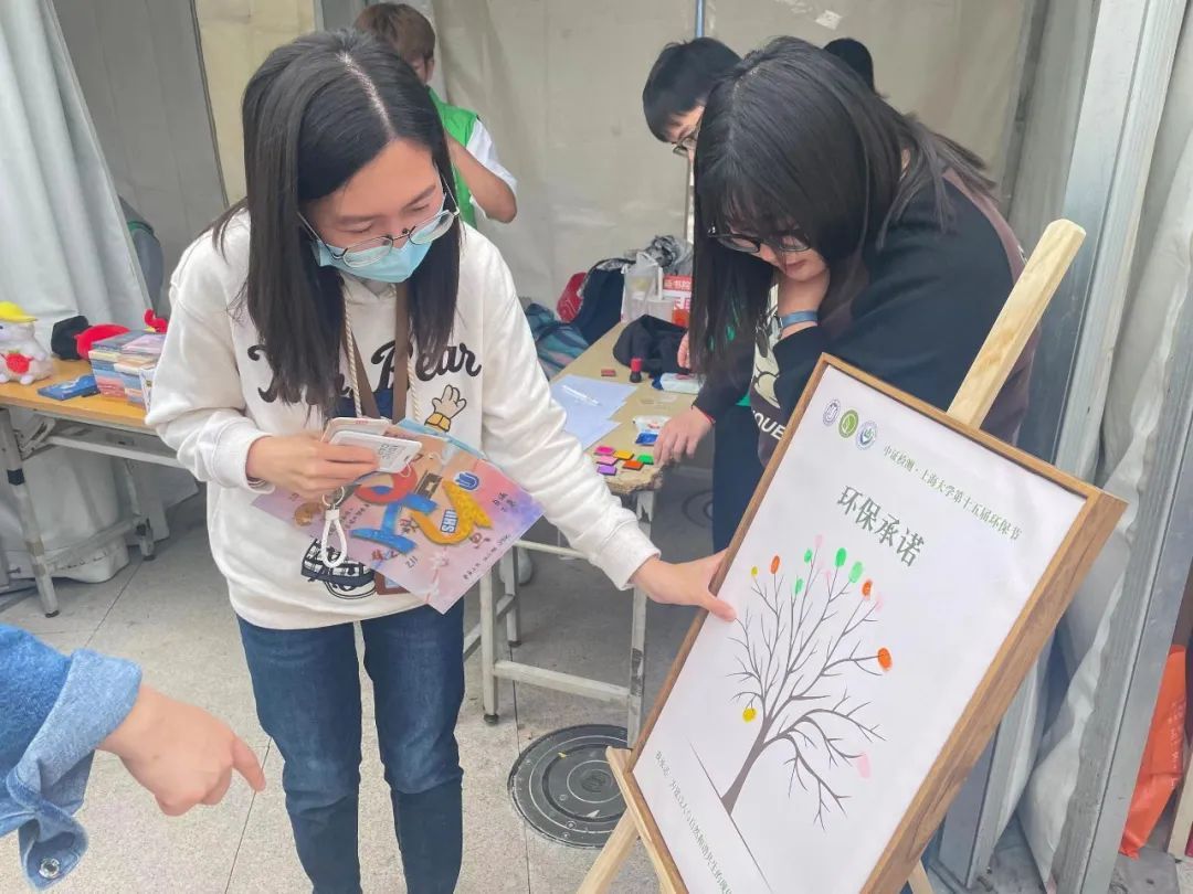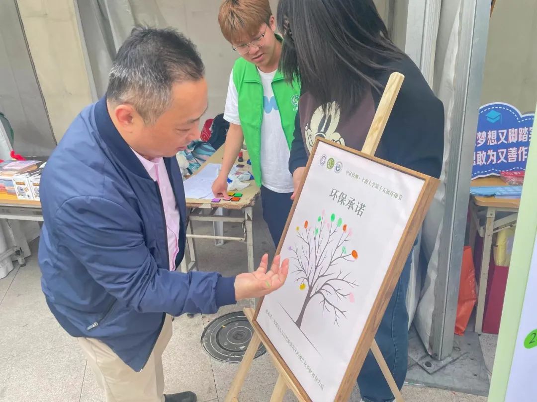 本次环保节的环保承诺围绕“绿色发展,和谐共生”展开。在活动过程中,工作人员设立了实体的环保承诺书,参与活动的师生纷纷在承诺书上按下手印,承诺将为建设人与自然的和谐共生的现代化贡献青春力量。