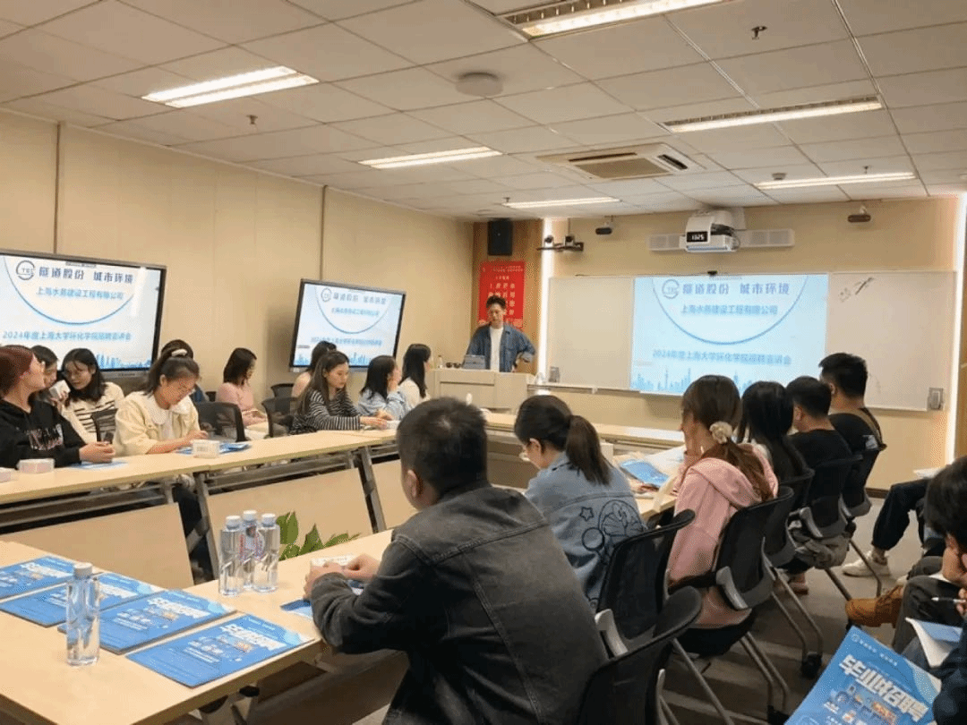 金秋迎才,职为你来。为贯彻党的二十大精神,认真落实政府对于高校毕业生“稳就业、保就业”的决策部署,10月19日下午13:30,隧道股份城市环境上海水务建设工程有限公司一行来环化学院举行专场招聘会。招聘会以环化楼902为主会场,环化楼915为分会场,同时在腾讯会议室进行直播,60余人到会。本次专场招聘会由隧道股份城市环境上海水务建设工程有限公司人力资源部招聘主管钱进主持。