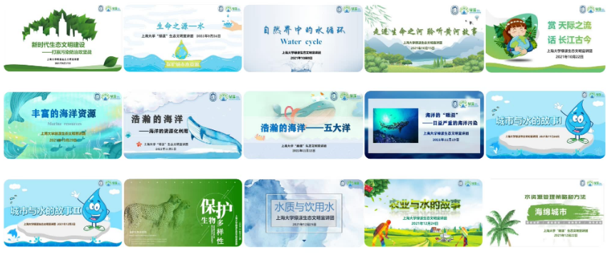 为支持“双减”政策落地,宣讲团与交大附中附属嘉定德富中学签订协议开展2021年秋季学期“自然界的水环境保护及治理”绿色特色课堂教育,由团队自主研发15节相关课程,共制作知识清单15份、课程PPT 691页,课程累计参与讲师75人次。