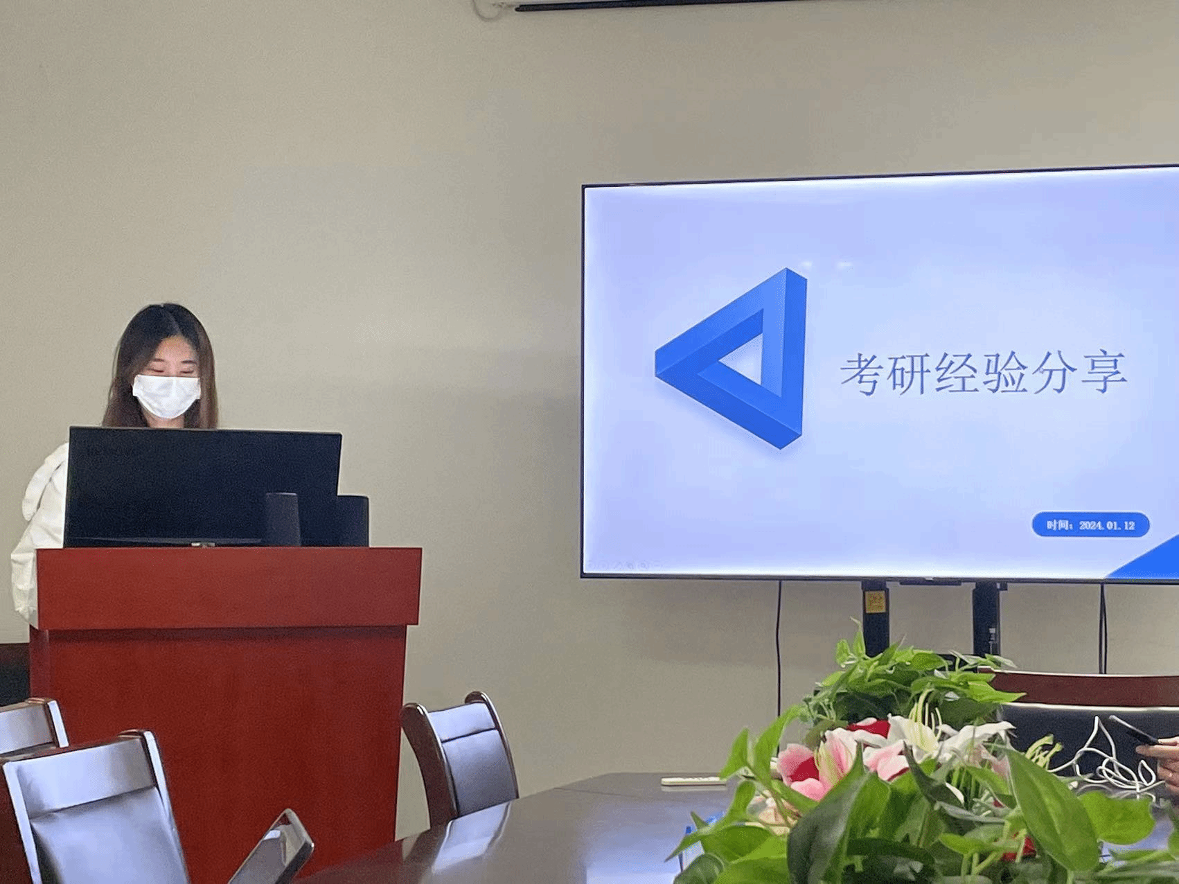 2023级研究生付星学长重点介绍了四门考试课程的学习方法,还对如何分配学习时间与择校等问题进行了指导。