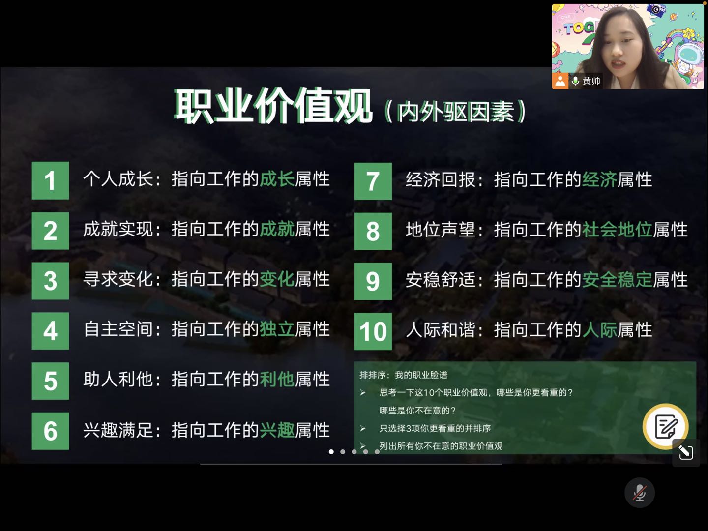 为帮助广大同学树立正确的人生观、学习观、价值观,鼓励同学们立足当下、着眼未来,不断增强职业生涯规划意识,正确定位自己的人生目标与发展方向,提高自己的综合素质和就业创业能力,环化学院就业促进中心于2022年10月31日邀请上海链家管培生招聘经理黄帅女士为环化学院师生开展大学生职业生涯规划的专题讲座。