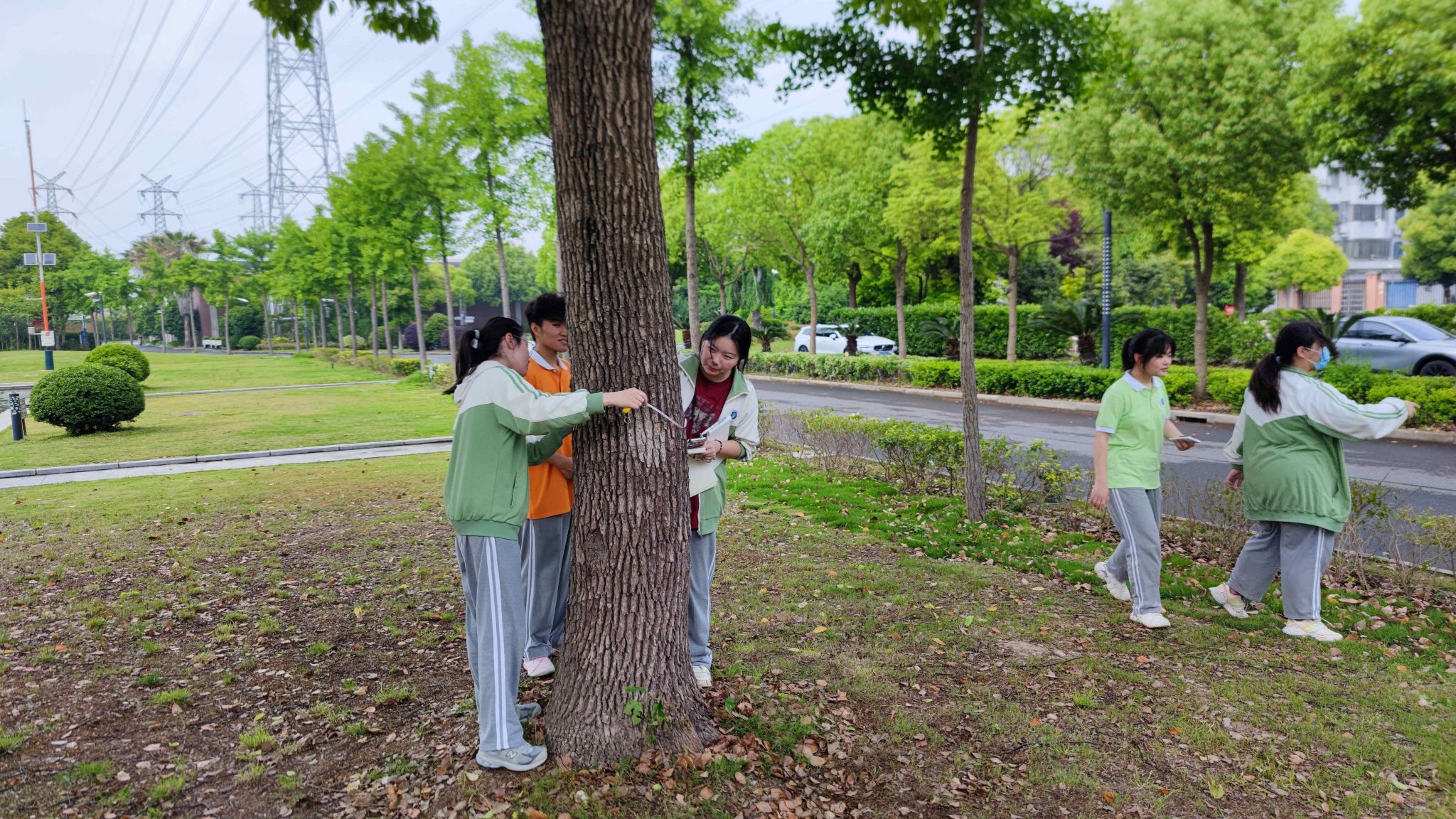 在绿色实践活动环节中,我院绿萤社会实践队为八中学子详细讲解了固碳的原理和意义,以及生物量法测量固碳量的基本方法。在测量过程中,同学们学习了如何使用简单的工具进行树木固碳能力的调查测算,并记录了各项数据。他们认真观察不同树木,结合所学知识,初步计算了不同树木的固碳量。