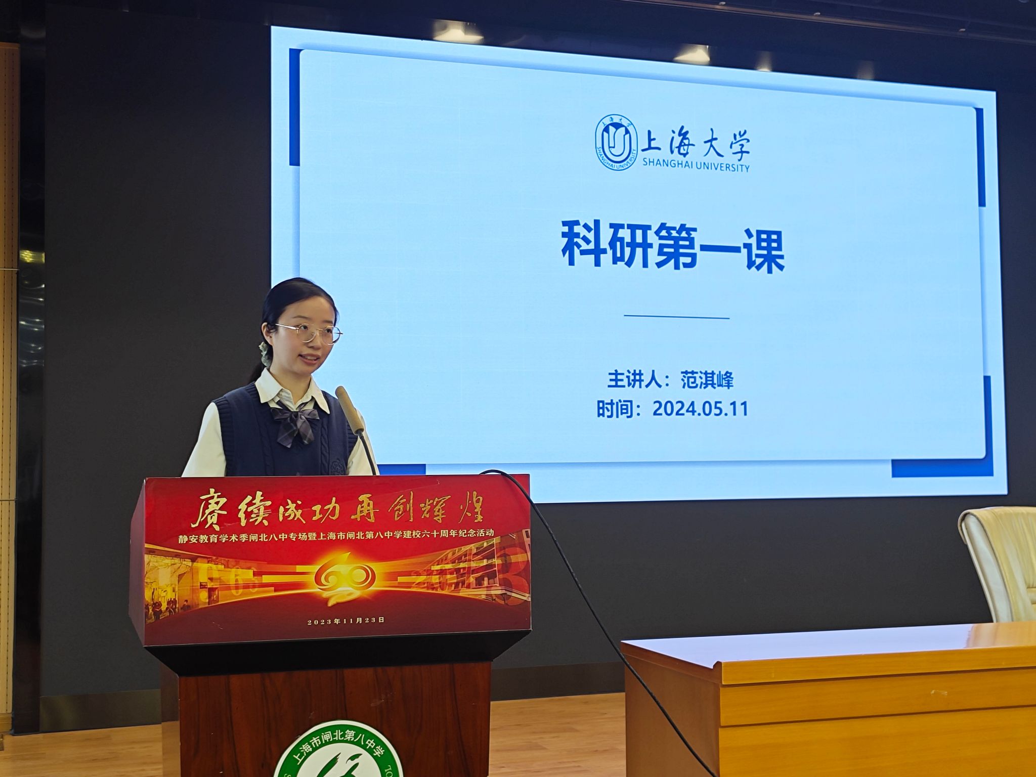 首先,我院2022级研究生、全国“双碳”创新创意大赛二等奖得主范淇峰为八中高一年级全体学生带来“科研第一课”,深入浅出地讲解了科研的基本方法,为研究性课题报告撰写提供了全面且实用的入门指南。