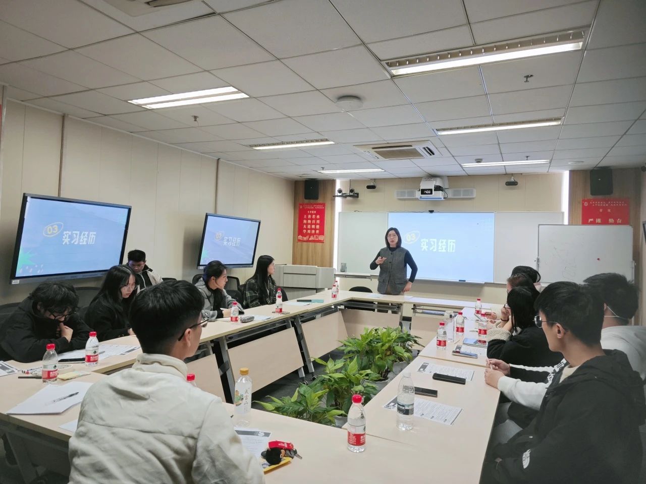 11月19日下午13:00,由我院“绿航”职业生涯教育工作室举办的“职闯未来”训练营的以“职场启航之新手指南”为主题的第六期线下辅导在环化楼902成功举办。此次活动邀请了慧聚教练团2位教练和15名训练营学员,活动由慧聚教练团成嵘教练主讲。本期专题辅导主要从“打造好简历”、“实习经历的重要性”、“面试的制胜之道”三方面进行展开,以此来引导学员们塑造个人职业形象,从而能够更加顺利地找到自己心仪的工作。