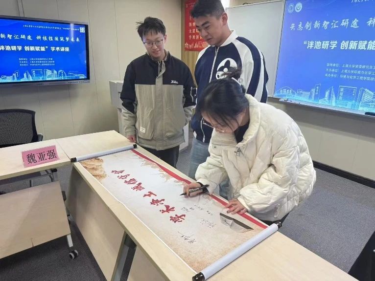 顺承魏亚强老师对学术诚信的强调,与会同学们在学术诚信承诺卷轴上郑重签下了自己的姓名,坚定对诚信科研的承诺和决心。