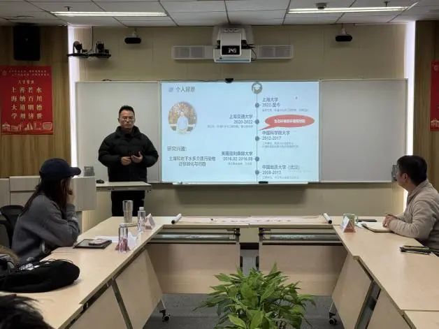 交流会伊始,环化学院团委副书记蓝梓桀老师对各位同学的到来表示热烈欢迎。蓝老师详细介绍了两位嘉宾的科研经历和个人成果,并寄语学子们以这次分享为契机,深化对科研的理解,明确自己的学术追求。