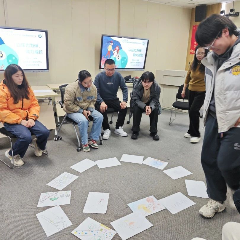在“破冰”环节,朱老师以熟悉度测试让同学们依次对团队成员的熟悉程度打分,并进行自我介绍,现场气氛逐渐活跃。朱老师随后引导同学们深入思考压力,分享自己对压力的看法以及参加活动的初衷。同学们纷纷敞开心扉,有的倾诉学业科研压力,有的讲述社交困扰,活动现场互动频繁,交流真诚而热烈。