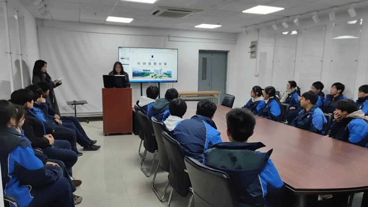 英国上市365团委书记赵申洁,团委副书记蓝梓桀,学生会执行主席戚滢滢,研究生会副主席张师溢,研究生张诗婉、温晓林、李月霞、胡杰热情接待了研学团一行。交流会由环化学院团委组织部部长陈紫儿主持,学院优秀的研究生、本科生与同学们面对面,从专业、科研项目、研究方向、学科竞赛等几个维度向大家展示了学院的过去、现在与未来,分享他们的学术经验和成长故事。