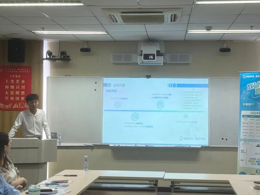 会议伊始,人力资源部招聘主管钱进对前来参会的学生们表达了热烈欢迎,并简单介绍了公司,让同学们对公司有了初步了解。接着,由2023届校友钱刘对公司业务板块、福利待遇、人才培养及岗位需求进行了详尽的介绍。最后,人力资源部招聘主管钱进解答了同学们关于工作的一系列问题,同学们也积极递交了简历。