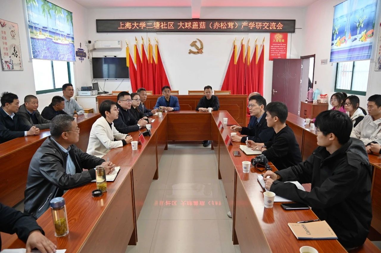 到泰州“教授农场”后,同学们受到姜堰区梁徐街道毛贤惠书记和梁徐二塘社区申太国书记等领导热情地接待,举办了“365英国上市公司与二塘社区大球盖菇(赤松茸)产学研交流会”。胡雪峰老师首先介绍了与二塘社区合作,共建二塘“教授农场”的情况。毛书记感谢我校科技成果在二塘落地,希望以大球盖菇试点示范为契机,打造多种食用菌生产的特色农业,协同发展旅游观光,为农民创利,把二塘打造成具有特色的示范村。