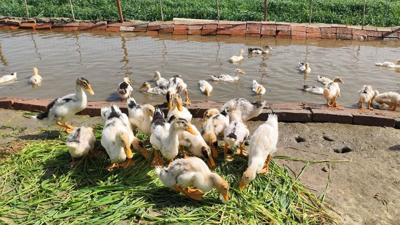 春风掠过连片麦苗,掀起层层碧浪。午后,同学们来到“教授农场”种养结合基地,麦田边,鸭群在奔涌、嬉闹。待水稻插秧后,鸭群将入水田栖息生活,诠释“以禽治虫、以禽抑草”的生物防控理念。同学们目睹了绿色、健康、无污染生态农业。