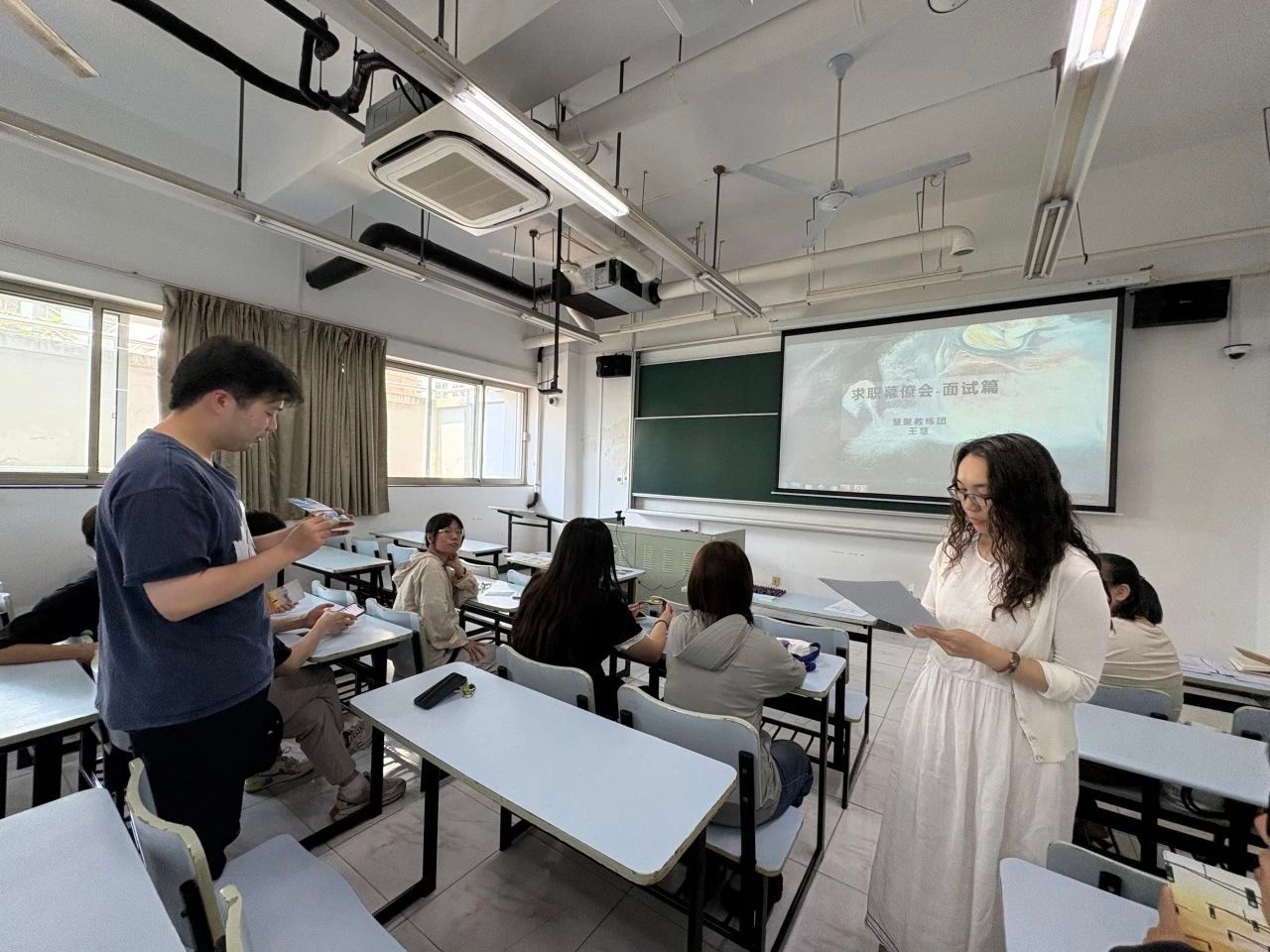 活动伊始,在老师的引导下,同学们每人挑选一张能够代表自身当前状态的卡片,并依次展开分享。随着交流的进行,现场氛围在轻松与真诚中逐渐升温,同学们不仅表达了当前状态,也畅谈了对课程的期待,许多同学表示,希望通过此次系统化的训练,进一步明确职业定位,提升面试实战能力,逐步建立起自信心与职场竞争力。