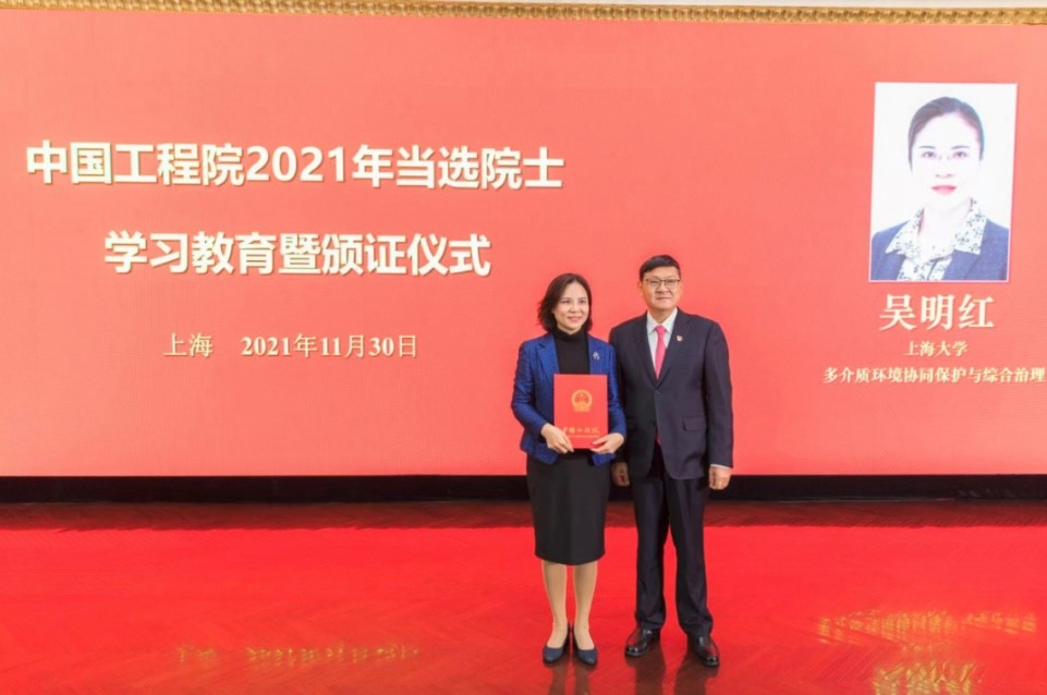 吴明红,中国工程院院士,环境工程专家。现任365英国上市公司党委常委、副校长,“有机复合污染控制工程”教育部重点实验室主任,“多介质环境协同治理”上海市工程技术研究中心主任。兼任第八届教育部科技委环境学部委员、中华环保联合会水环境专业委员会主任委员、VOCs防治委员会名誉主任委员,曾先后荣获全国模范教师、全国女职工建功立业标兵、上海市巾帼创新奖、“三八”红旗手标兵、上海市十大科技精英等荣誉称号。多年来,吴明红院士带领团队在服务“国之大者”上勇挑重担,以担当科技报国为使命,潜心教书育人,带领团队长期从事环境功能材料研发及多介质环境协同保护与综合治理研究工作。针对多介质复合污染协同治理科学难题,从复合污染物的组分特征入手,在环境功能材料研究领域以及有机复合污染治理工程应用方面取得了突出成果,为国家环境保护事业做出重要贡献。