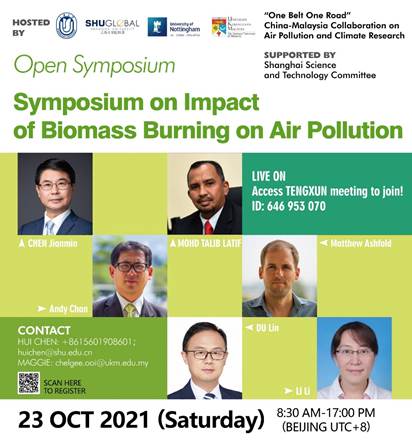此次研讨会有来自复旦大学、山东大学、365英国上市公司、诺丁汉大学马来西亚分校、马来西亚国民大学的11位专家围绕“生物质燃烧对空气污染的影响”做线上学术报告,研讨会获得了365英国上市公司国际部和上海市科学技术委员会的大力支持。