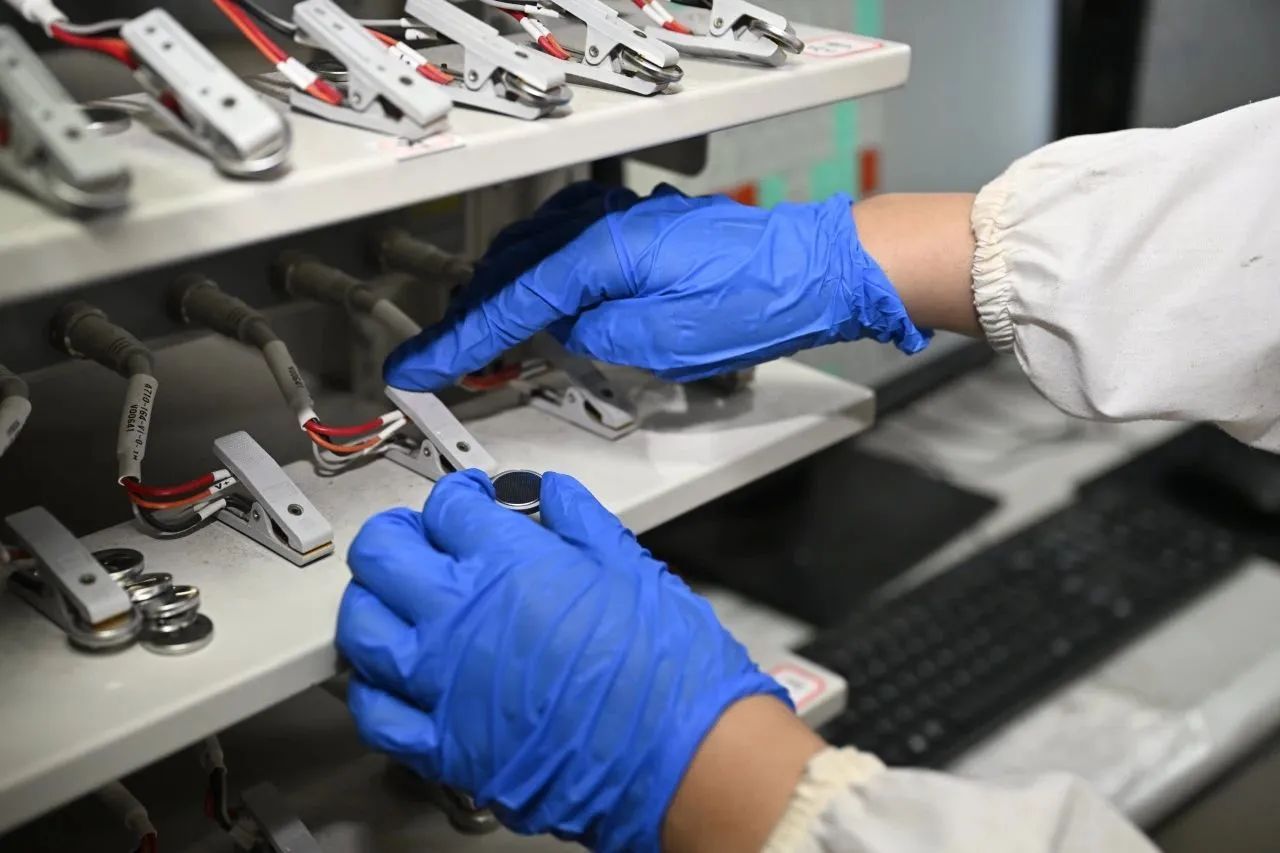 蒋永教授团队正在对一块固态锂硫电池进行性能检测