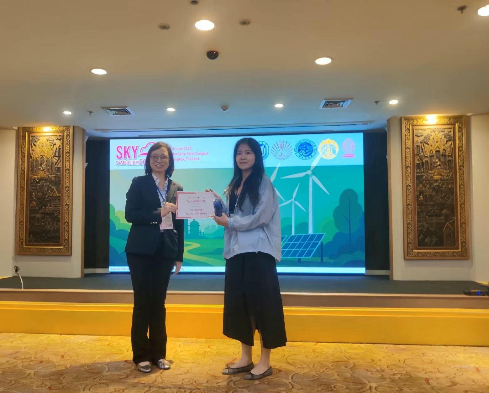 学术报告结束后,中日韩泰印尼五方代表团的负责人向在展示环节中表现优异的学生颁发了“优秀报告奖”和“优秀海报奖”的证书与奖品,以表彰他们在绿色化学与清洁技术领域的创新成果。