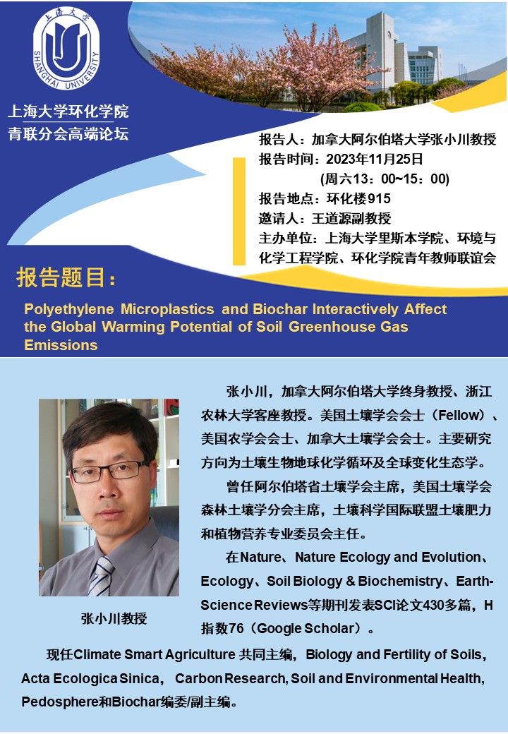 报告题目:Polyethylene Microplastics and Biochar Interactively Affect the Global Warming Potential of Soil Greenhouse Gas Emissions