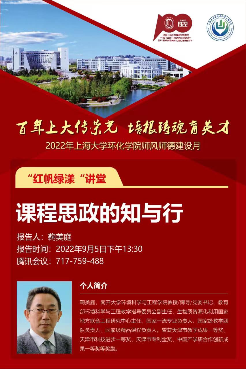 鞠美庭,南开大学环境科学与工程学院教授/博导/党委书记、教育部环境科学与工程教学指导委员会副主任、生物质资源化利用国家地方联合工程研究中心主任、国家一流专业负责人、国家级教学团队负责人、国家级精品课程负责人。曾获天津市教学成果一等奖、天津市科技进步一等奖、天津市专利金奖、中国产学研合作创新成果一等奖等奖励。