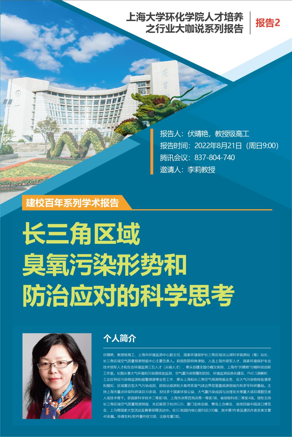 纪念建校百年系列学术报告——长三角区域臭氧污染形势和防治应对的科学思考