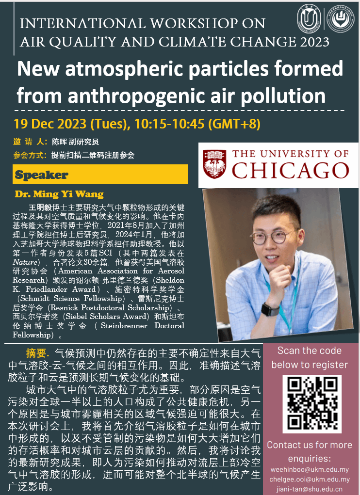 报告题目:New atmospheric particles formed from anthropogenic air pollution