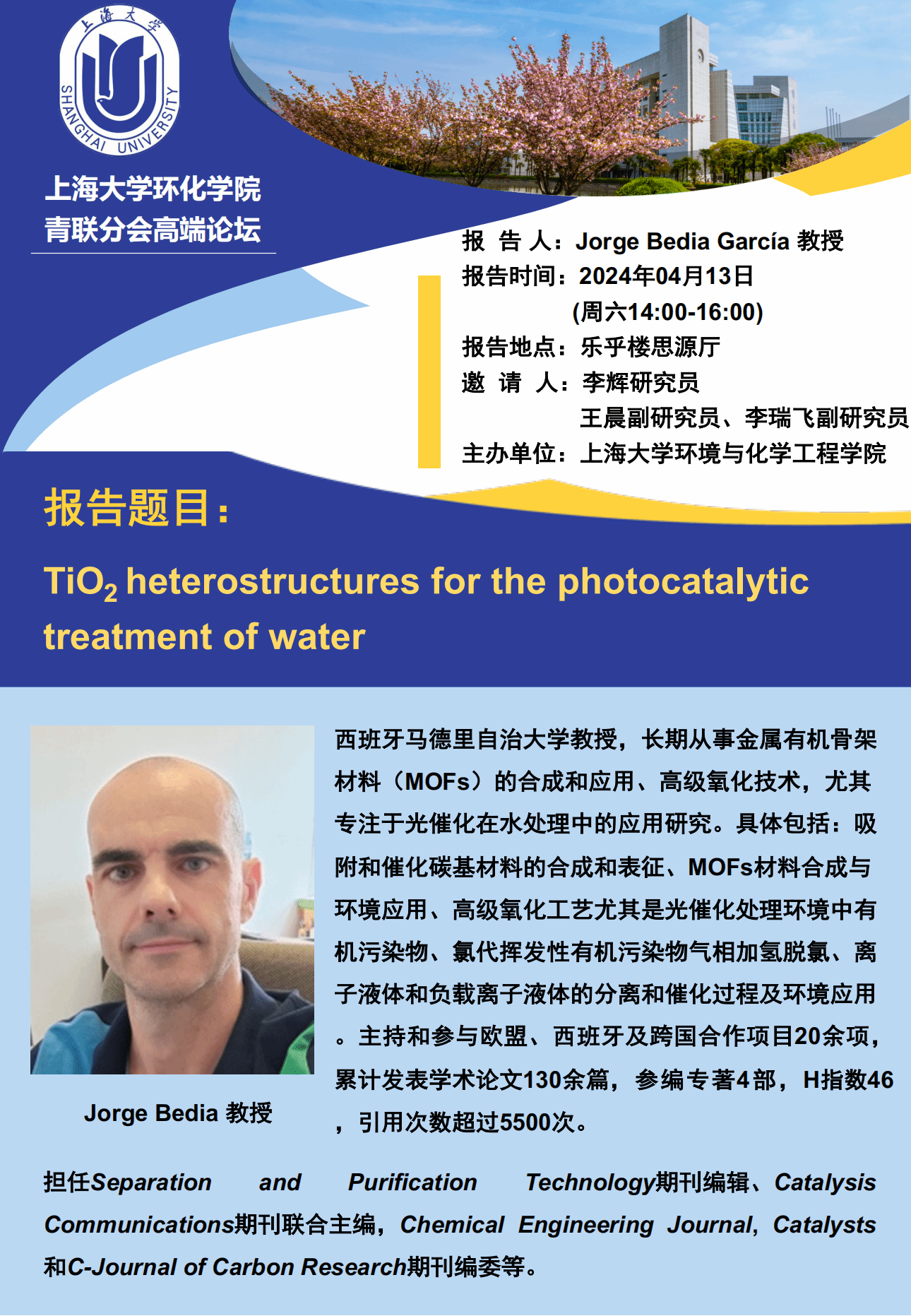 报告题目:TiO2 heterostructures for the photocatalytic treatment of water