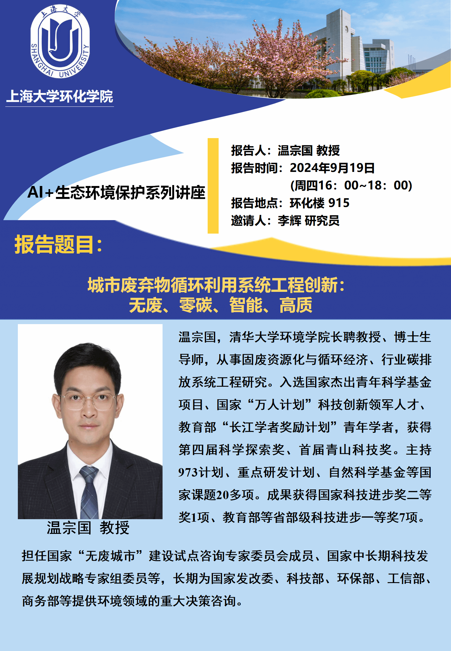 报告人:温宗国 教授