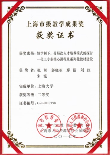 张彰、郭晓亚、鄢浩、刘红、朱宪老师荣获上海市教学成果二等奖