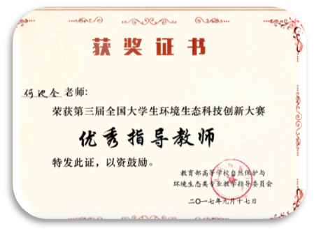 何池全老师荣获第三届全国大学生环境生态科技创新大赛优秀指导教师