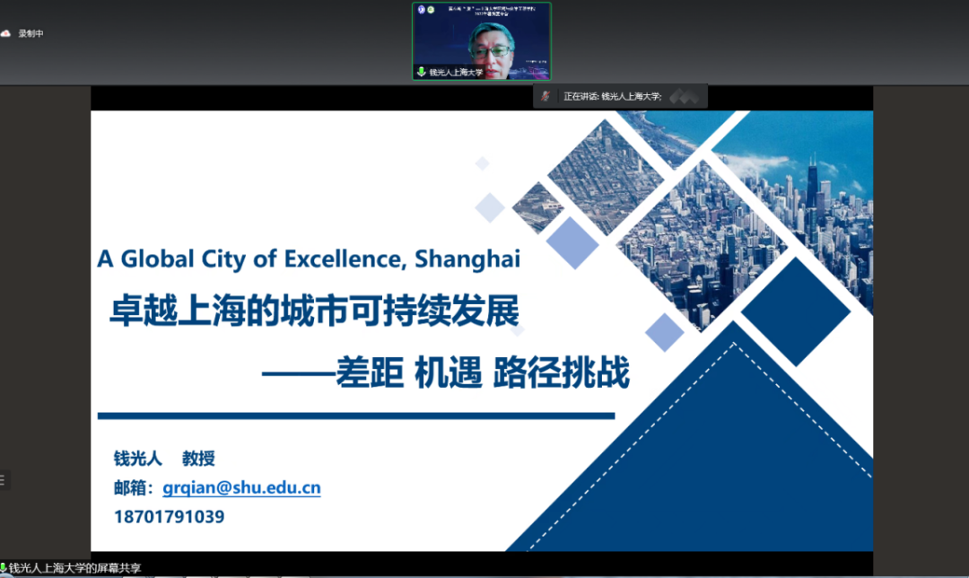 钱光人老师做“卓越上海的城市可持续发展——差距、机遇、路径挑战”的汇报