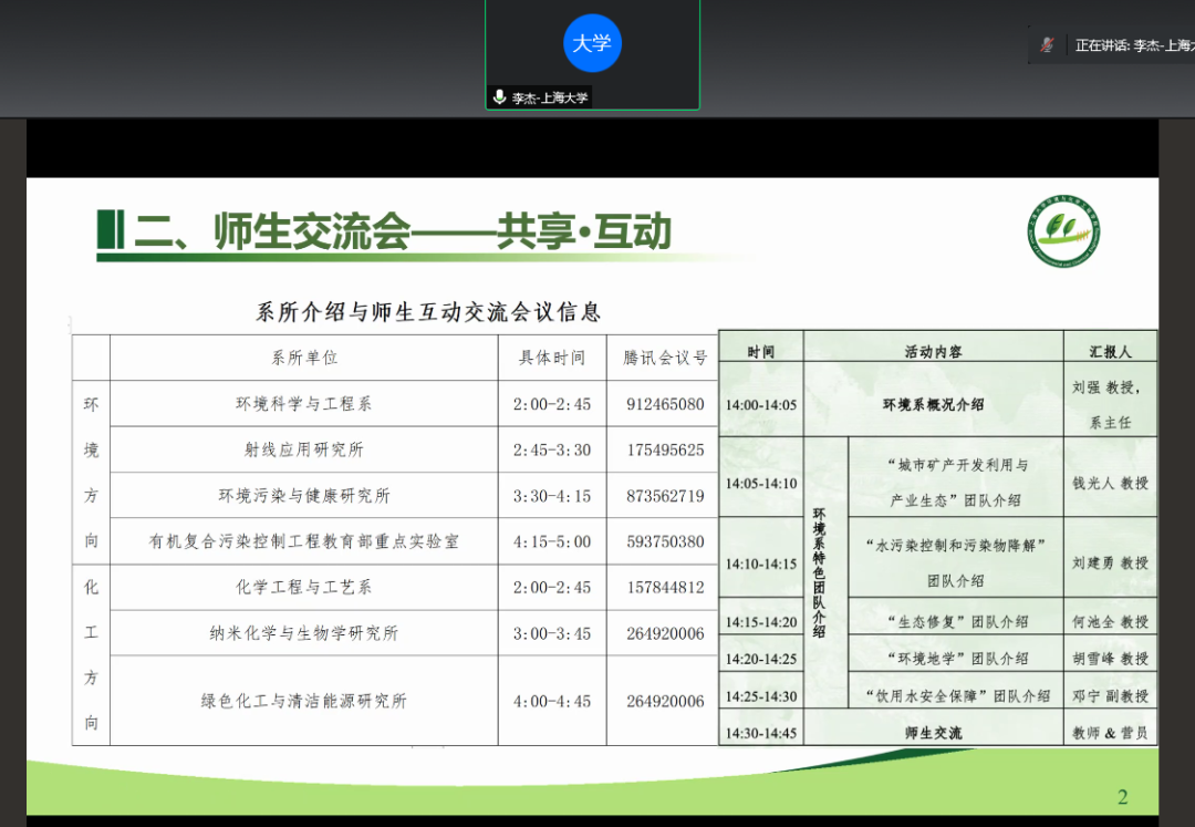 16日下午,环化学院“两系四所”的老师们进行了深入浅出的学科专业及团队宣讲介绍,并进行师生互动问题环节。