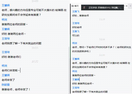 两位老师在宣讲后,也细致回答了同学们提出的问题,以丰富的经验和专业知识,解答了同学们关于科研方向、硕士生活、未来就业等方面的困惑,同学们也都纷纷表示感谢老师们的耐心解答。