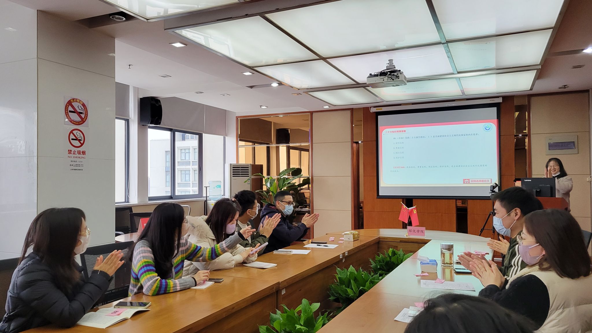 此次活动在学院中反响热烈,营造出了以赛促学、以学促行的良好氛围。在答题环节中,老师们不仅深化了对党的二十大精神的理解,也更加坚定了胸怀“国之大者”,做新时代“大先生”的理想信念。环化学院将继续深入学习宣传贯彻党的二十大精神,并以创新的形式载体,激励全院师生深刻领会和把握二十大精神的丰富内涵,做到学以致用,在新征程上推动学院各项事业高质量发展。