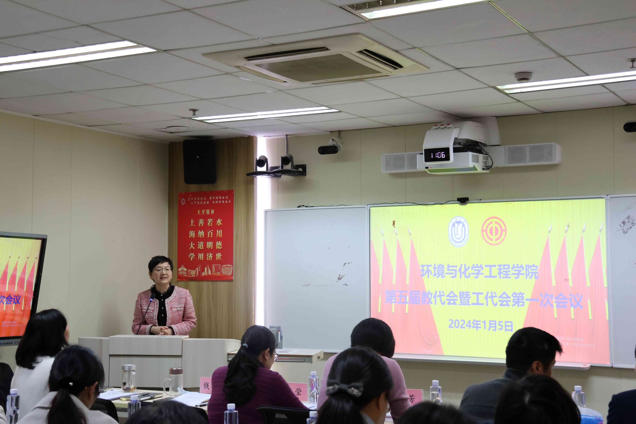 党委书记钱冬英代表学院党委对上一届分工会在学院各项工作中所发挥的积极作用表示充分肯定,对第四届分工会主席朱惠娟带领工会委员为学院建设与发展付出的辛勤汗水表示衷心的感谢;同时对新一届分工会委员会当选表示祝贺,并提出殷切希望和要求:一是发挥好桥梁纽带作用,及时将师生诉求反馈到学院;二是发挥民主监督作用,推动学院各项制度的执行落细落实;三是通过举办多样化、常态化的文体活动,促进教师沟通交流,增强教师队伍的向心力和凝聚力。钱冬英强调,希望各位教师代表要将学院双代会精神传递给身边的每一位教师,带动全院上下在各自的工作岗位上做出更多优异成绩,推动学院高质量发展再创辉煌。