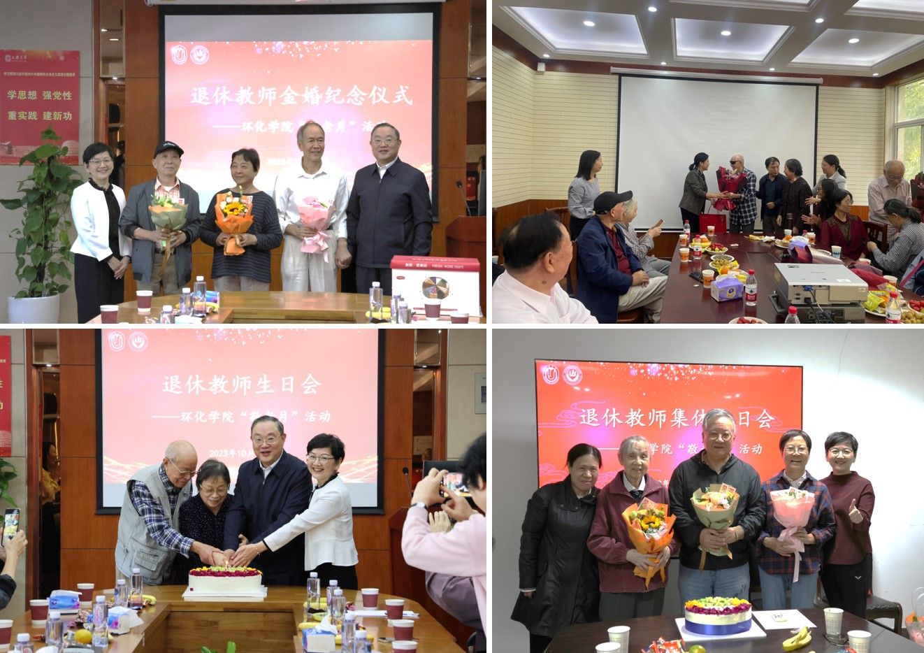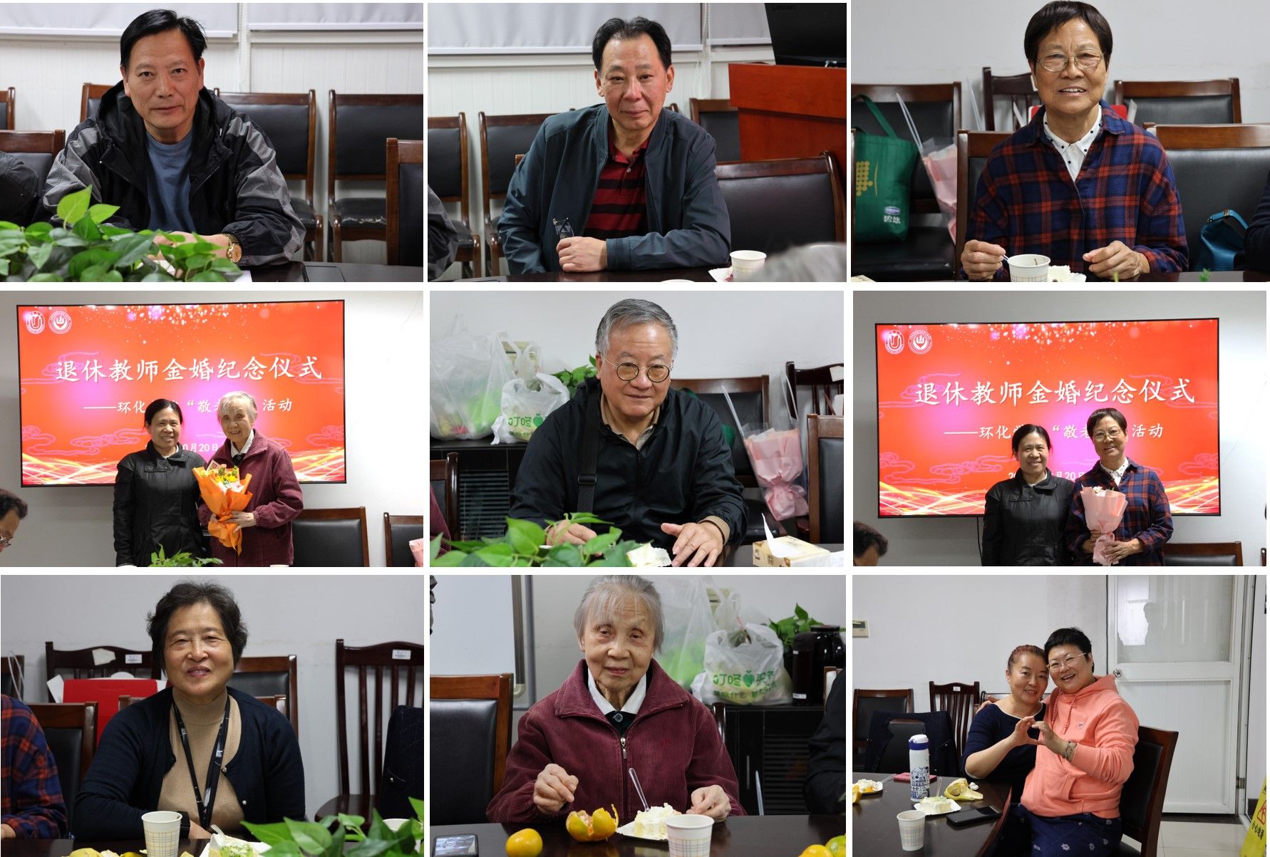 在各个退休教师金婚纪念仪式与退休教师“逢五逢十”生日会上,校党委书记成旦红,校党委常委、副校长吴明红,环化学院党委书记钱冬英分别向老教师们送上鲜花与祝福,并共切生日蛋糕,庆祝老师们的金婚与生日,让老教师们再次感受到环化学院大家庭的温暖。