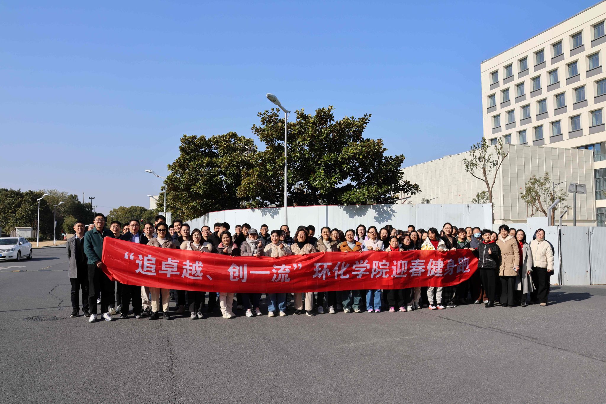 在“健身跑”环节,老师们从环化学院大楼前广场出发,绕过学院的主要建筑,穿越校园的绿地和河边,沿着校园的主干道一路向前,最终回到起点。在跑步过程中,教师们共同感受着冬日的暖阳和清新的空气,精神振奋,奋力争先,在轻松愉快的氛围中互相鼓励,分享运动的乐趣,展现出积极向上的精神风貌。