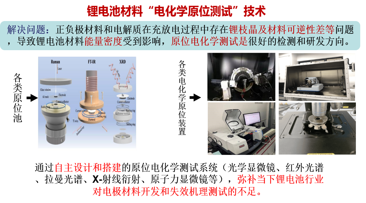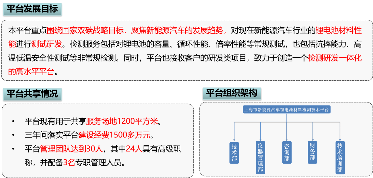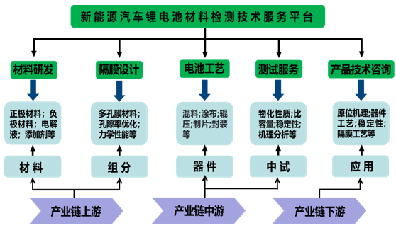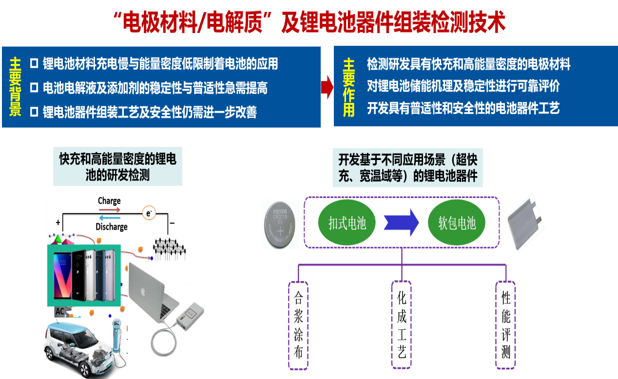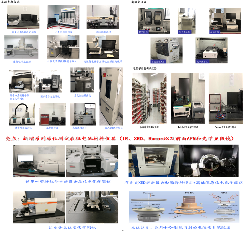 平台具有用完整的锂电池材料检测仪器(X射线衍射仪、拉曼光谱仪、红外光谱仪、原子力显微镜、热重质谱联用仪、扫描电子显微镜、液相色谱仪、有机元素分析仪、气色谱质谱联用仪、高性能光学显微系统、光电化学测试系统和电化学性能测试相关仪器)等设备。同时,锂电池加工及电池组装设备也 一应俱全,用于对外测试服务设备的仪器总值超过1500万元。