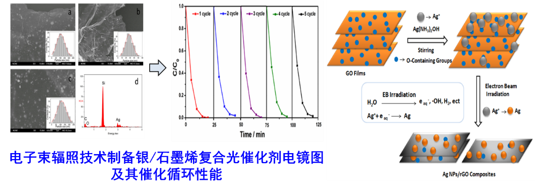 通过高能脉冲电子束辐照技术,合成了金属、非金属等系列掺杂的石墨烯催化材料,实现对有机污染物高效吸附的同时,实现对污染物的动态催化降解。